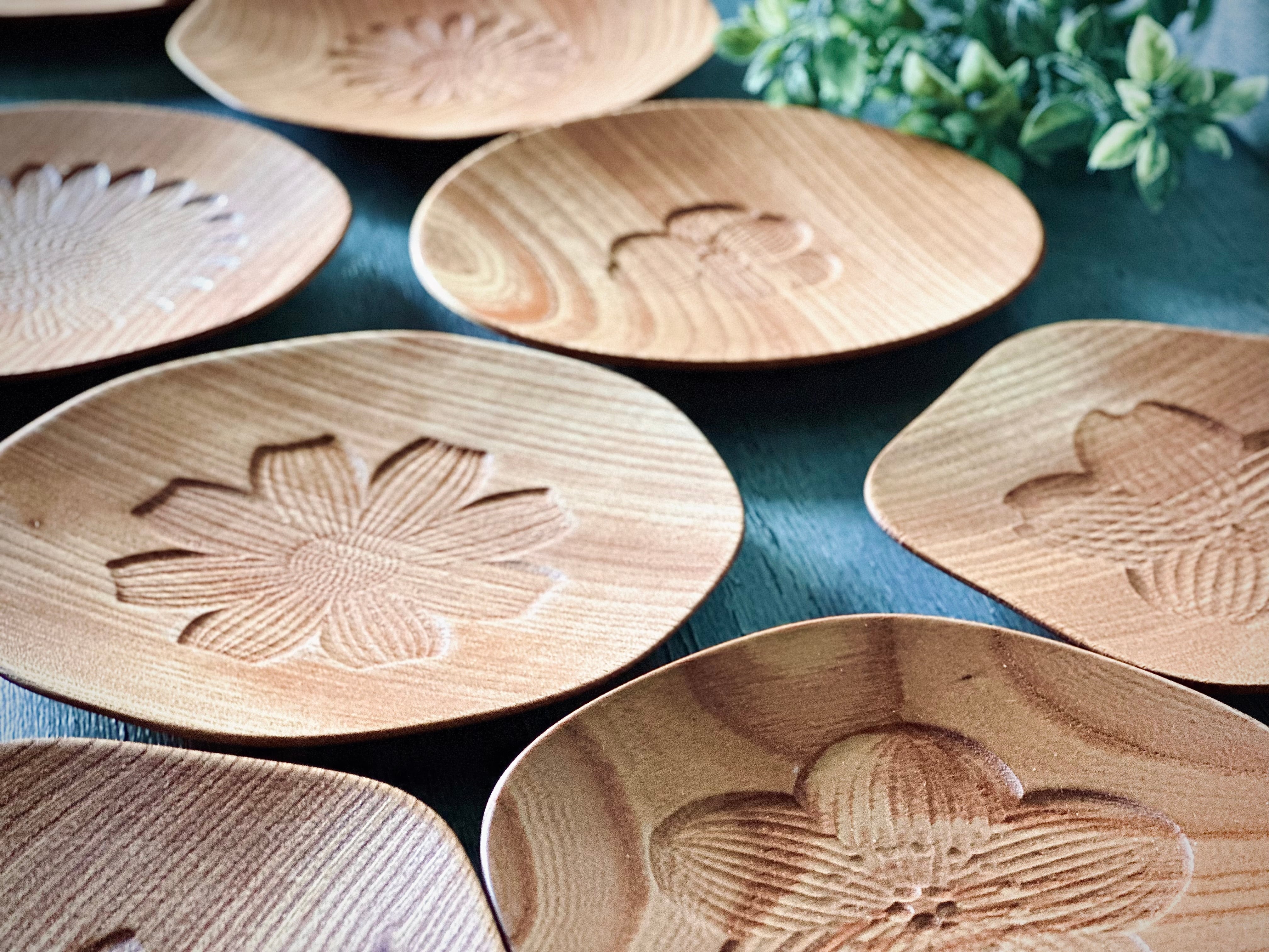 季節の美しい花をモチーフに、一枚一枚木から削り出したFlower plate。 材質: ケヤキ 直径: 19cm 高さ: 2.4cm 食品安全基準試験をクリアしたセラミック塗料を浸透させて仕上げることで、木の質感を残しながら防水性・撥水性・耐久性を高めています。 使用後は食器用の中性洗剤で洗ってください。 長時間水に漬けることや、食洗機の使用はお控えください。 ※無垢の木材を使用しているため、木目はひとつひとつ異なります。製品の仕上がりには個体差がある場合がございます。