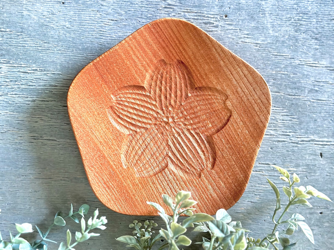 季節の美しい花をモチーフに、一枚一枚木から削り出したFlower plate。