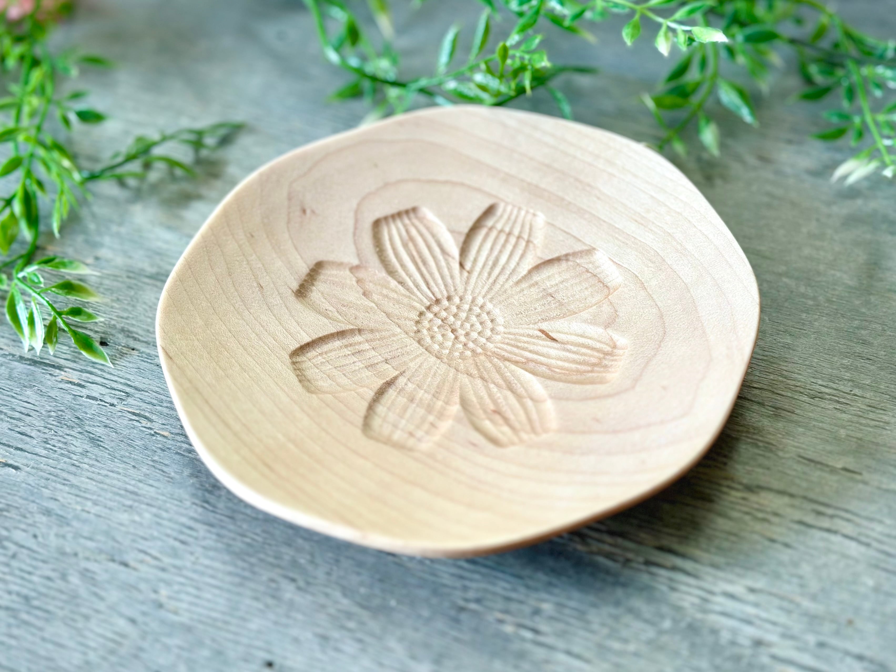季節の美しい花をモチーフに、一枚一枚木から削り出したFlower plate。